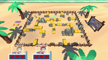Top Down Shooter inspiré de Bomberman, nous devions faire un jeu qui rappelle l'été. Nous sommes donc partis sur une bataille de pistolets à eau dans une map avec des portails. Votre objectif sera d'éliminer les autres enfants se trouvant dans la zone de jeu afin de devenir le plus grand tireur de la plage !